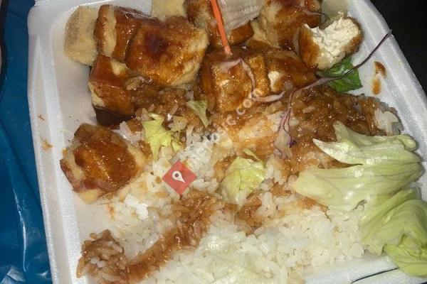 Generous portions- one chicken teriyaki would feed 2 hungry folks. Mac salad is just ...