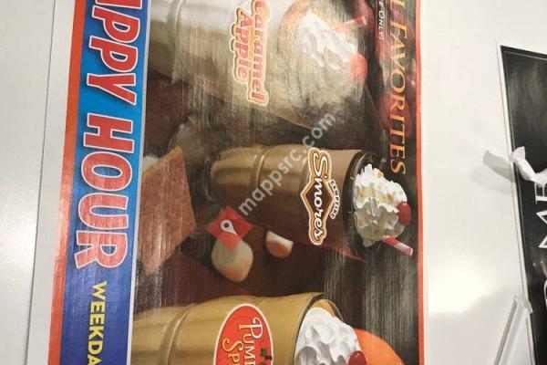 It's really bright & fun inside. We had burgers which were very good & juicy....
