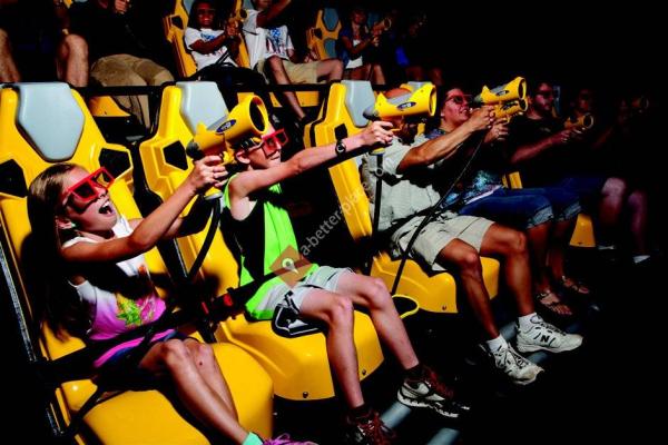 "XD Ride brings the thrill of a ROLLER COASTER and the 7D INTERACTIVE SIMULATION of a video game right to you to create an exhilarating experience for the whole family. All guests are strapped into a motion seat that gives you the feeling that you are really FALLING, CRASHING AND FLYING. Along with the motion effect, there is state of the art surround SOUND, WIND, AND LIGHT EFFECTS that make you feel like you are a part of the game. The best part of the experience is that you will be equipped with a LASER BLASTER to fend off the ENEMY ATTACK and compete for the high score to beat your family and friends. Don’t hesitate to add this new experience to your THINGS-TO-DO list."